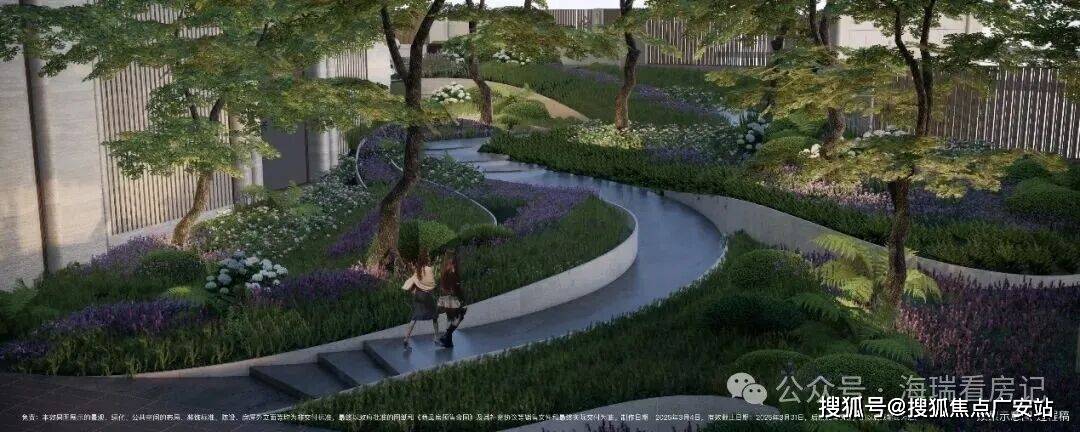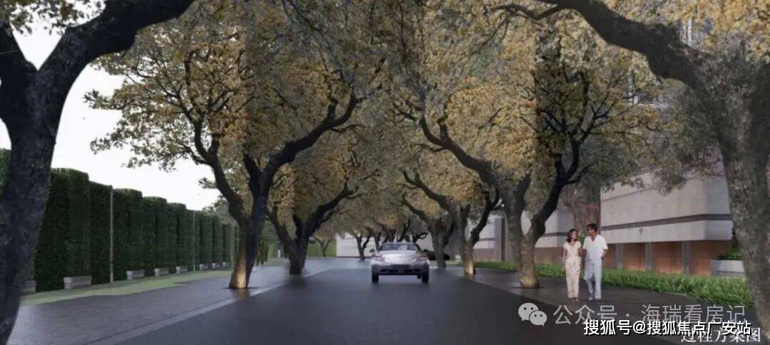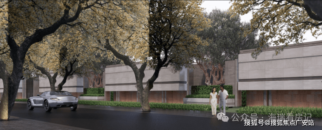 比如,规划道路上的香樟树,要选择合适的树龄与尺寸,项目花了数月才找到10棵合格的。围墙间隔的紫薇树,也是千挑万选而来~