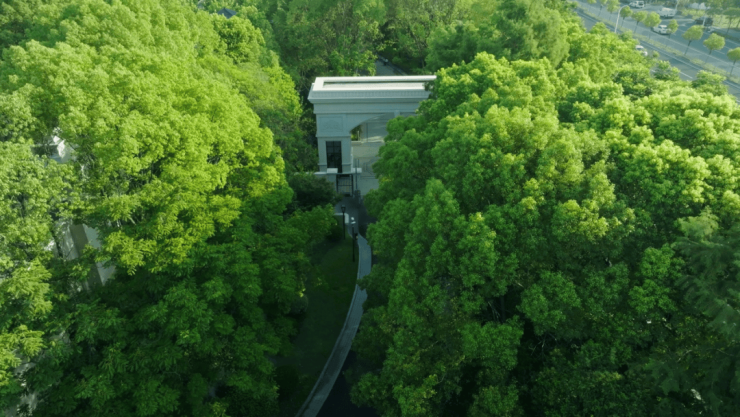 宽绰道路两旁的绿树成荫、配上别墅区干净低伏的天际线,漫步在这里有一种世外桃源的既视感。与